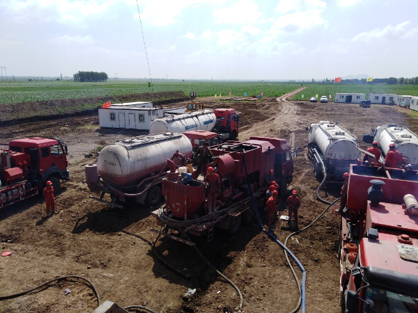 伊22-13-17井位于吉林省伊通縣靠山鎮(zhèn),松原拓威40899鉆井隊(duì)承鉆,完鉆井深2945米,完井套管,全井封固。大慶市東油鉆采有限公司固井隊(duì)施工,施工時(shí)間2018年6月27日。注灰:低密度65方,原漿22方,水泥漿返出5方。施工正常。